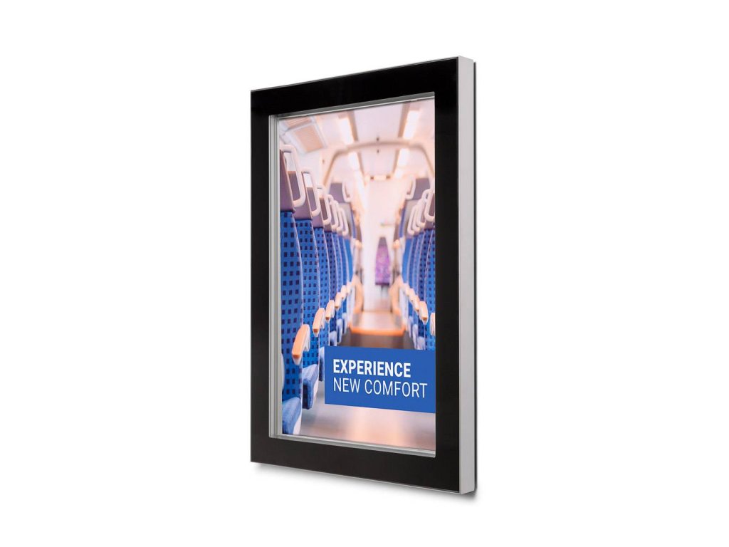 Díky magnetické zadní stěně zůstane vaše reklama bezpečně na svém místě, ať už jde o jeden velký plakát nebo několik menších listů. Vitrína je k dispozici v rozměrech od 50 x 70 cm až po A1. Štíhlý a cenově dostupný design pro každého!