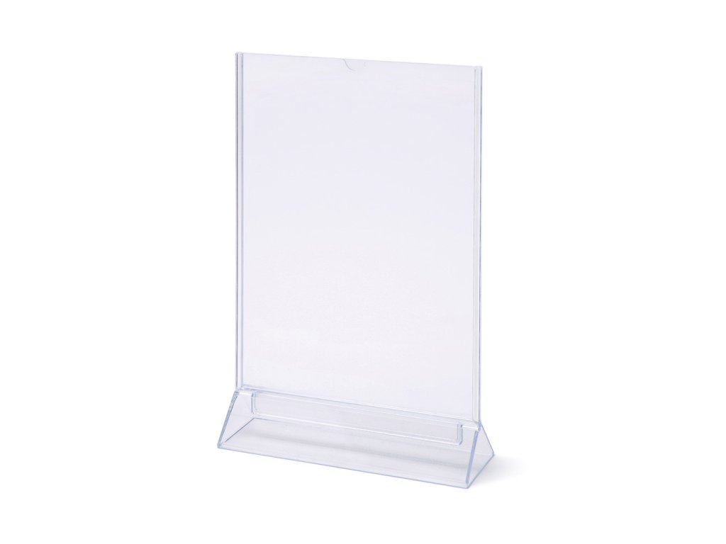SCRITTO® stojánek na letáky ve tvaru T economy je praktické a elegantní řešení pro prezentaci tiskovin na pultech, stolech či recepcích. Vyrobený z kvalitního čirého plastu zaručuje výbornou čitelnost vkládaných materiálů. Díky jednoduchému zasunutí papíru mezi dvě průhledné stěny umožňuje snadnou a rychlou výměnu obsahu. K dispozici jsou verze na výšku i na šířku v několika formátech – A4, A5. Vhodný pro jídelní lístky, letáky, ceníky nebo informační oznámení.