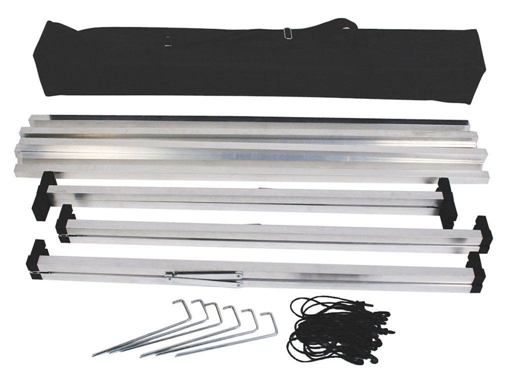 - Konstrukce: hliníkové trubky (cca 25 mm) + plastové spojky