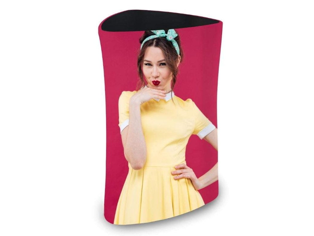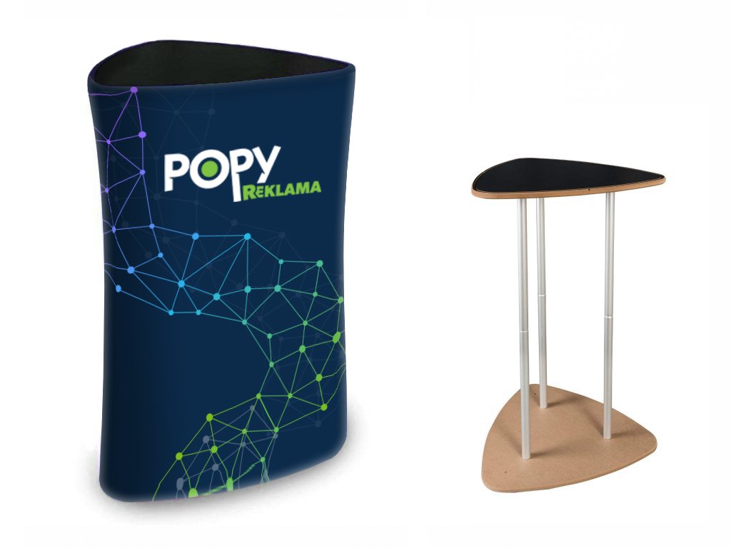 Textilní pult - Triangle není jenom obyčejný pult, je to poutač s duší. Jeho moderní design a inovativní provedení umožňují prezentovat vaše sdělení na vyšší úrovni. Jeho všestrannost a profesionální vzhled ho dělají vhodným pro různé události a prostředí.