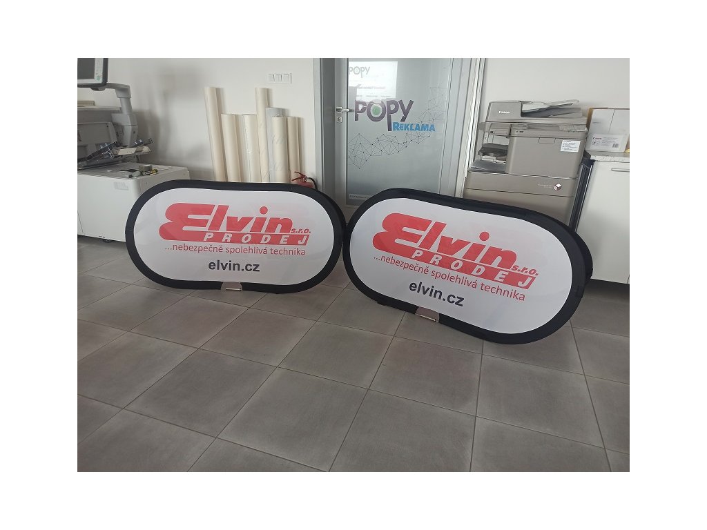- Oboustranná prezentace: Banner je oboustranný, což znamená dvojnásobnou viditelnost Vaší značky a možnost prezentovat různé informace na každé straně.